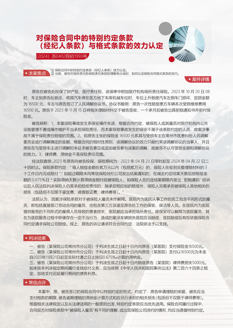 常信典型案例:對(duì)保險(xiǎn)合同中的特別約定條款(經(jīng)紀(jì)人條款)與格式條款的效力認(rèn)定